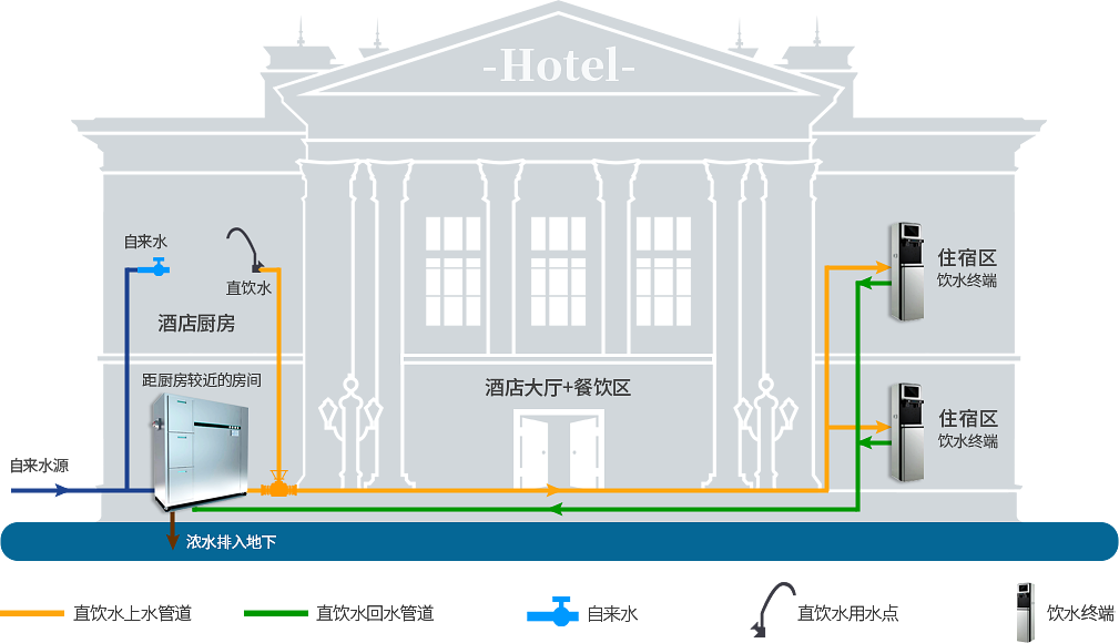 我國餐飲行業(yè)80%的企業(yè)使用的都是自來水,但據(jù)餐廳經(jīng)營者介紹,自來水中雜質(zhì)太多,氯化物、重金屬離子過重,會(huì)對消費(fèi)者的身體造成傷害,此外,它們?nèi)缤?調(diào)料",會(huì)掩蓋菜品本味和口感。 長此以往,無論是對消費(fèi)者還是商家都是致命的。
